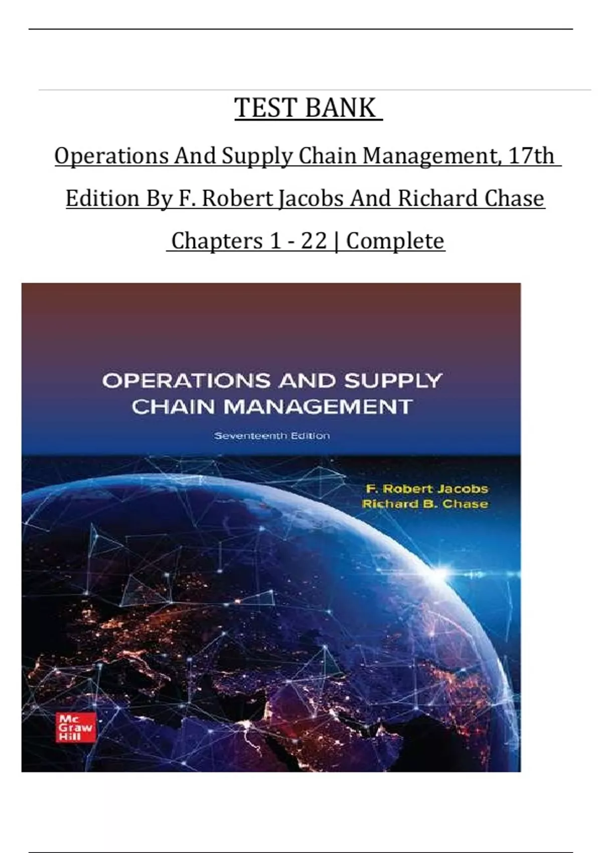 TEST BANK for Operations And Supply Chain Management, 17th Edition By F. Robert Jacobs And Richard Chase Chapters 1 - 22 | Complete PDF.