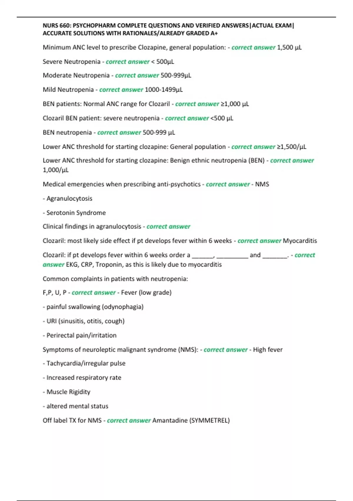 NURS 660: PSYCHOPHARM COMPLETE QUESTIONS AND VERIFIED ANSWERS|ACTUAL EXAM|
