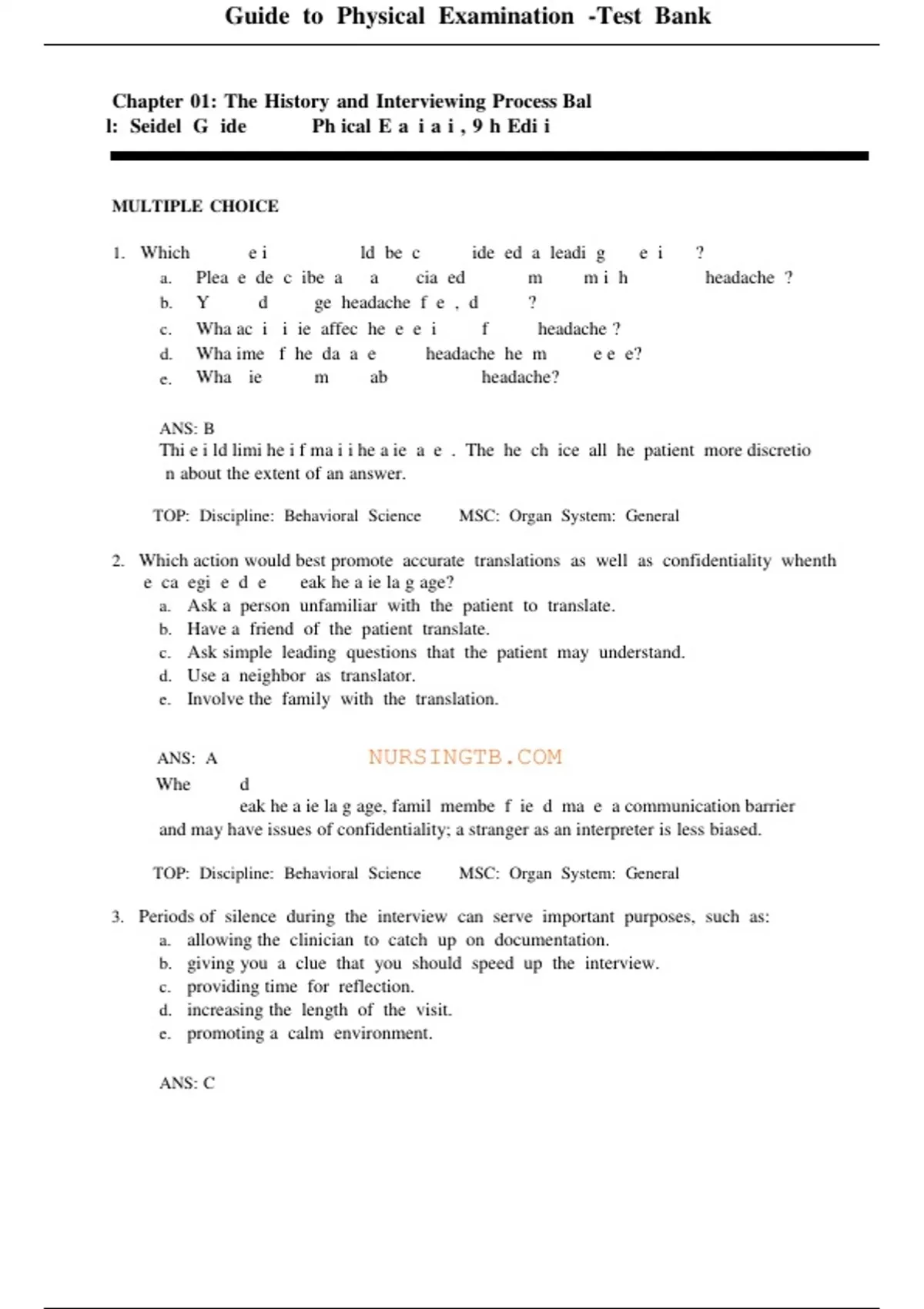 Guide to Physical Examination -Test Bank