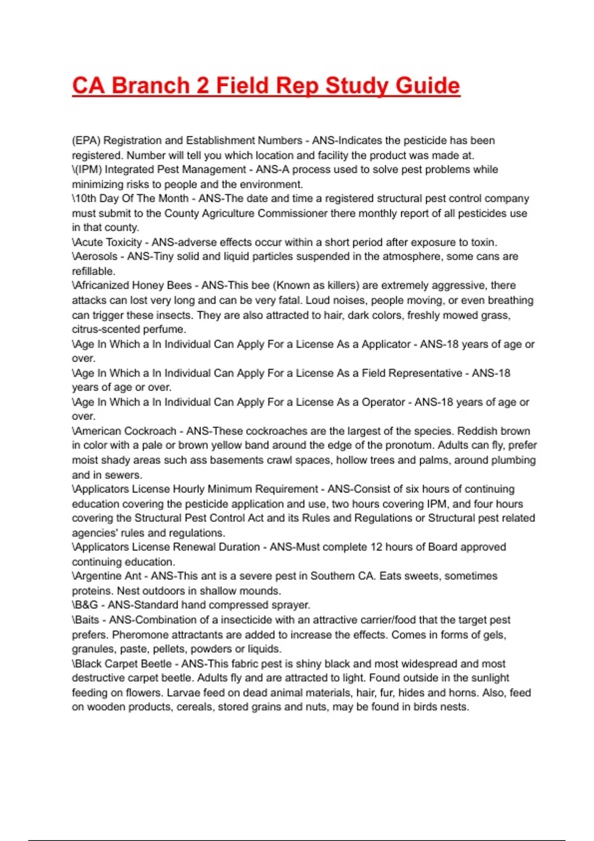 CA Branch 2 Field Rep Study Guide
