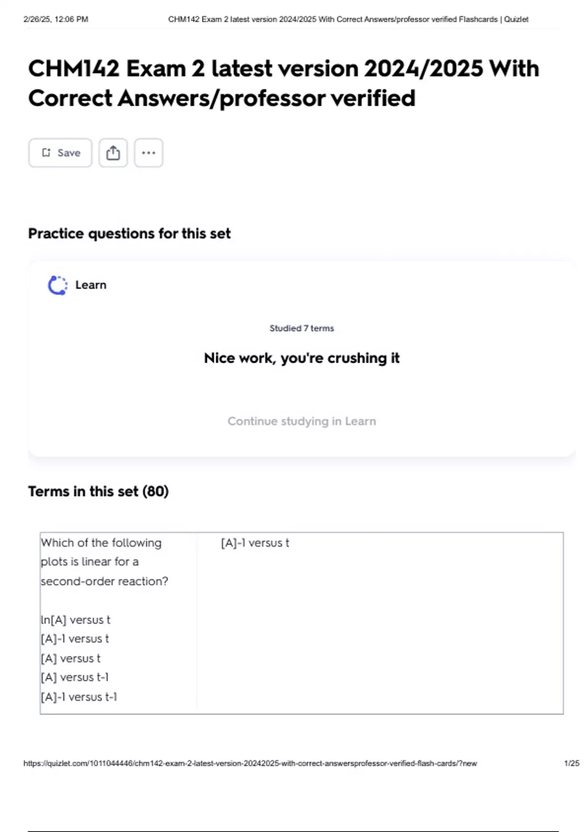 , 2/26/25, 12:06 PM CHM142 Exam 2 latest version 2024/2025 With Correct Answers/professor verified Flashcards | Quizlet