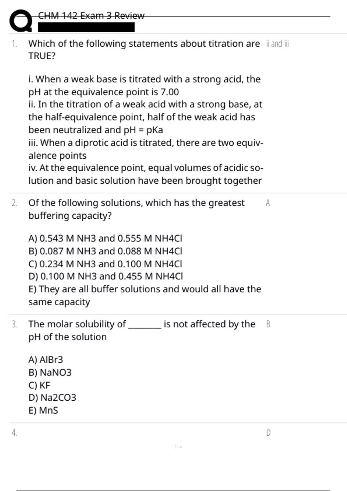 1. Which of the following statements about titration are ii and iii