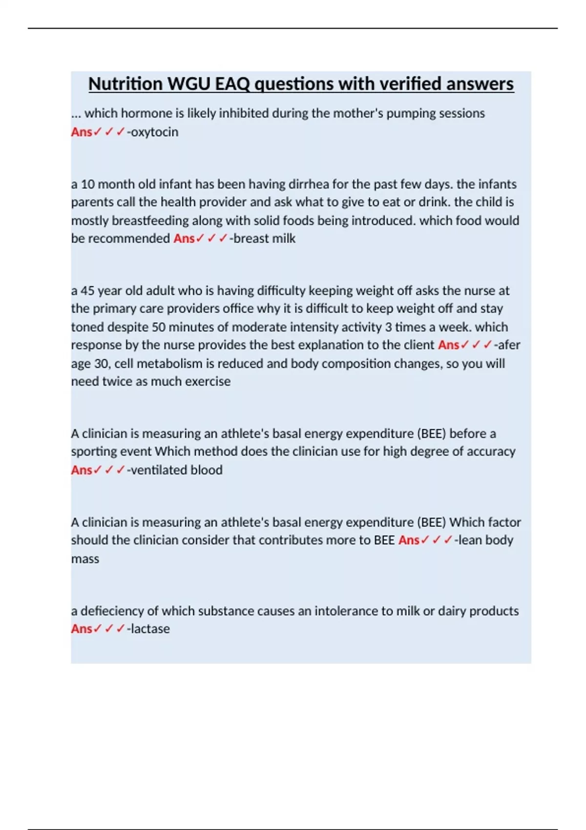 eduction point would the nurse make about nutritional saftey? Ans✓✓✓--