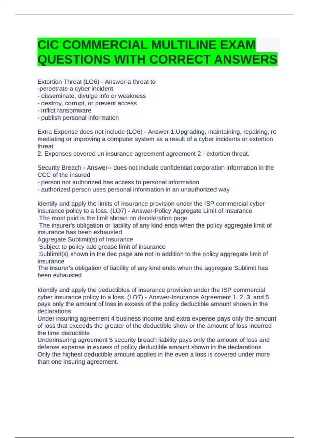 CIC COMMERCIAL MULTILINE EXAM QUESTIONS WITH CORRECT ANSWERS