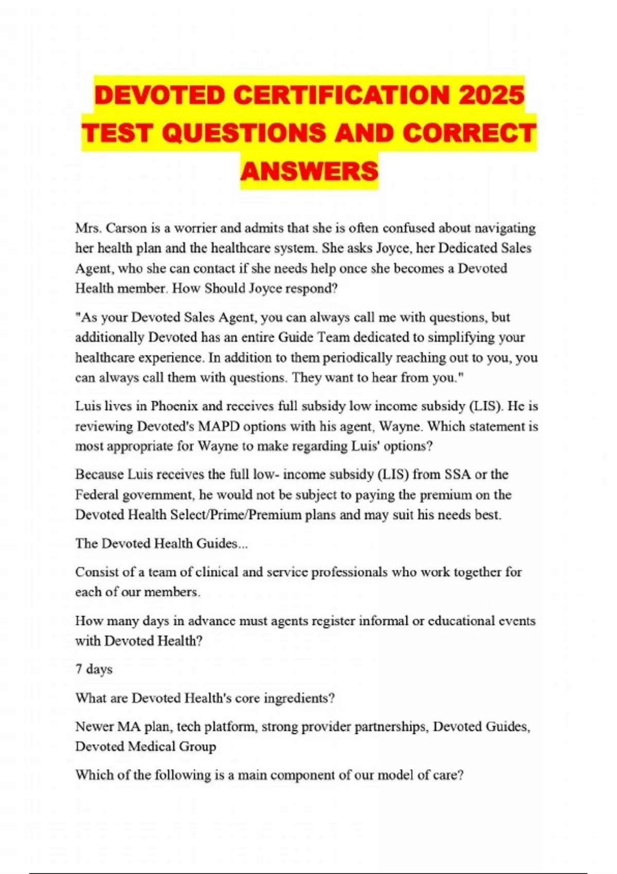 DEVOTED CERTIFICATION 25 TEST QUESTIONS AND CORRECT ANSWERS...