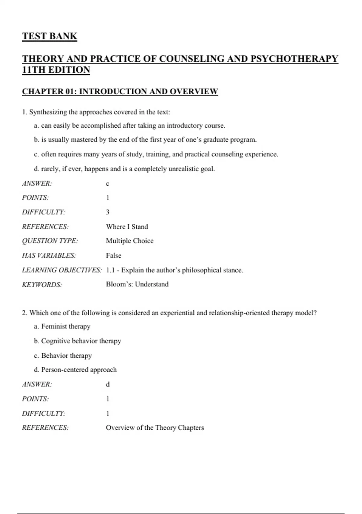LEARNING OBJECTIVES: 1.3 - Differentiate between each contemporary counseling model discussed in this