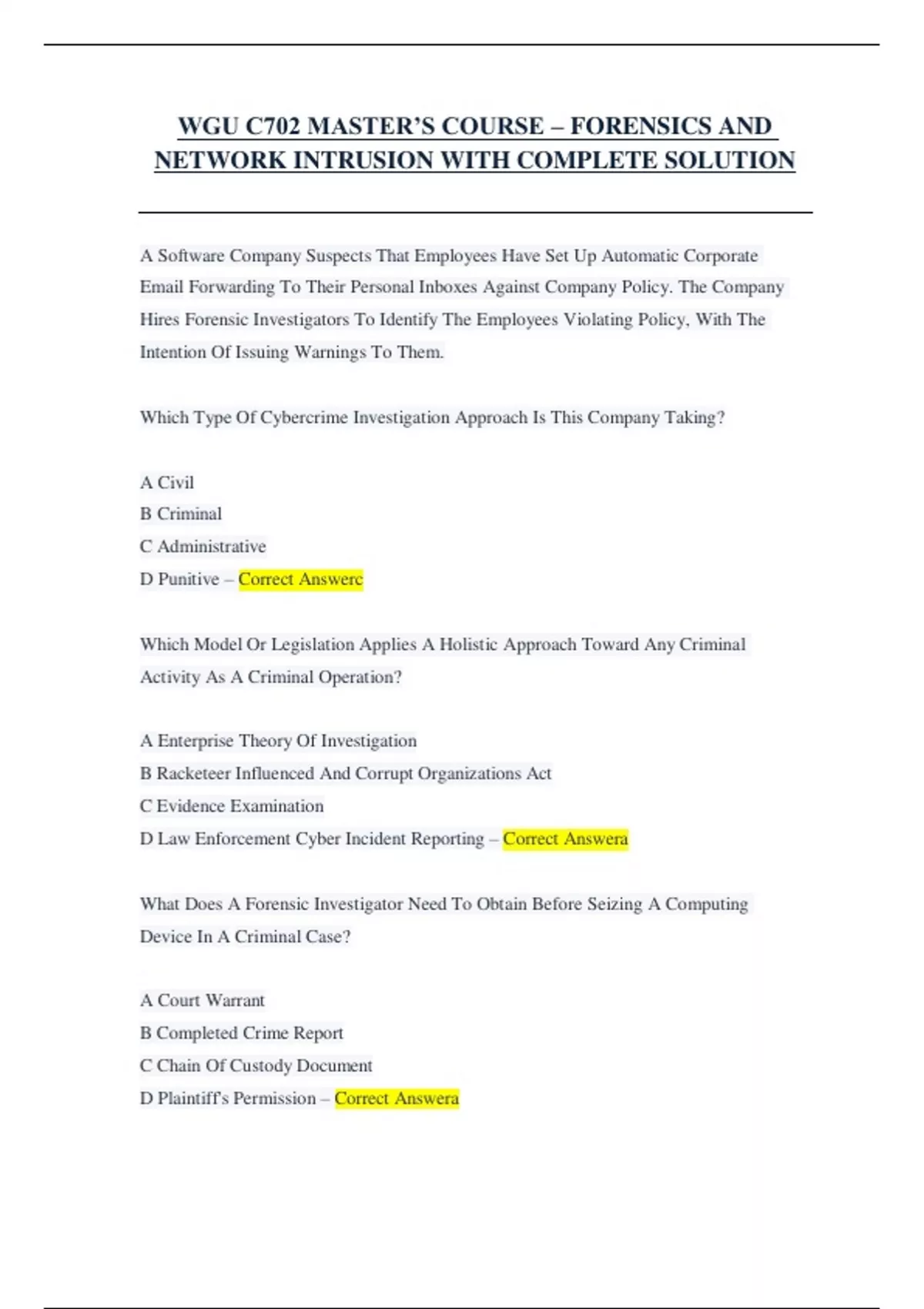 WGU C702 MASTER’S COURSE – FORENSICS AND