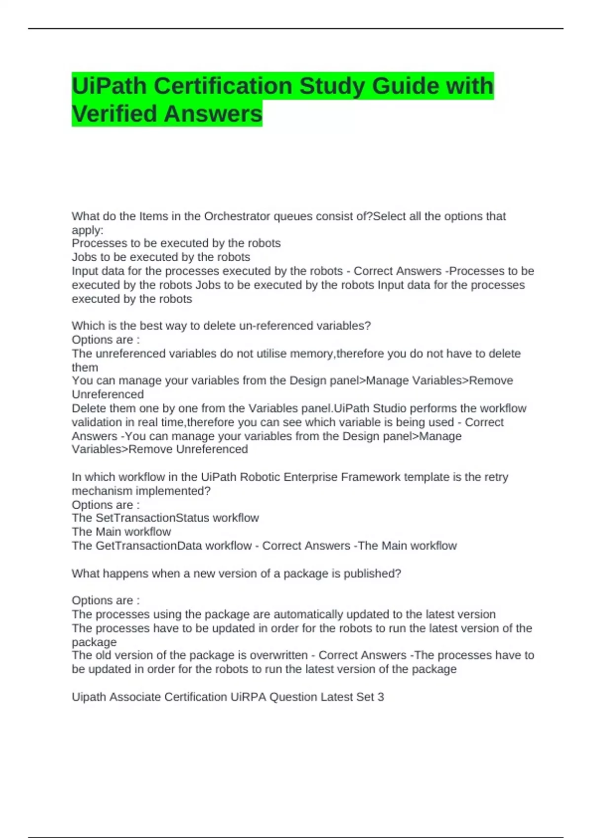 Uipath Associate Certification UiRPA Question Latest Set 3