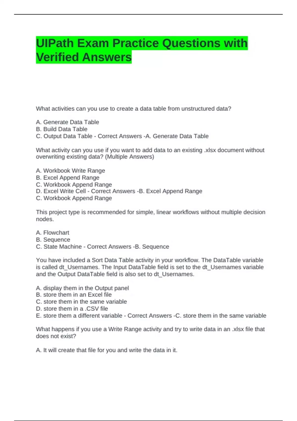 UIPath Exam Practice Questions with
