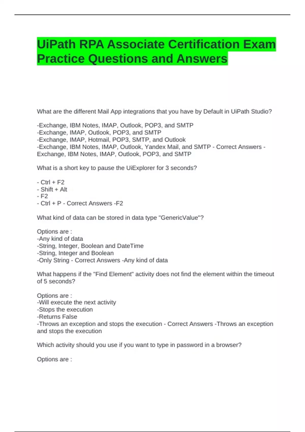 UiPath RPA Associate Certification Exam Practice Questions and Answers