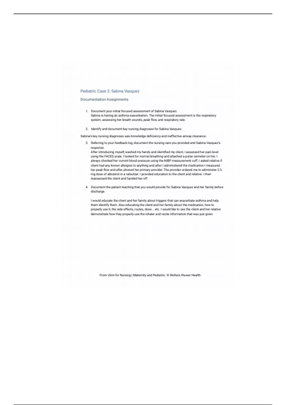 NUR 224 Pediatric Case 2 Documentation Assignment