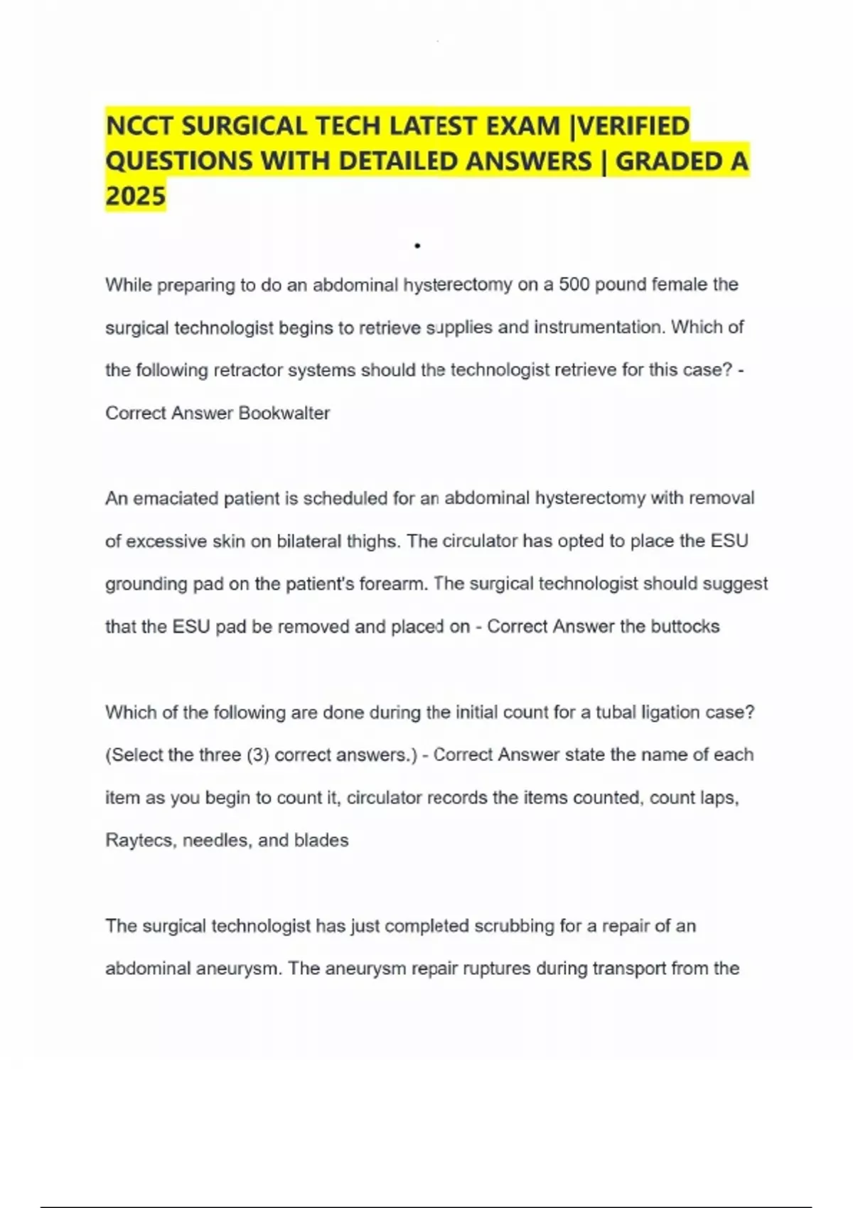 NCCT SURGICAL TECH LATEST EXAM |VERIFIED QUESTIONS WITH DETAILED ANSWERS | GRADED A 2025