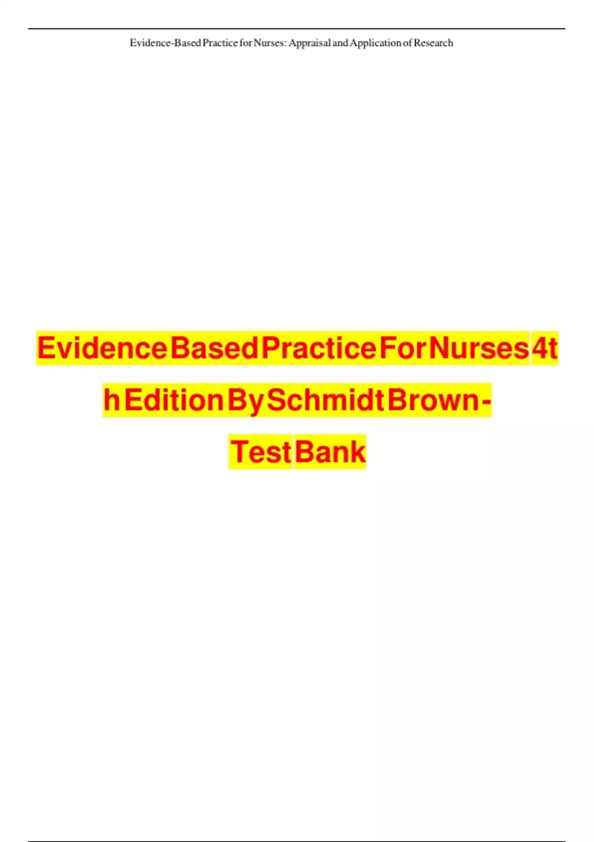 Evidence Based Practice For Nurses 4t
