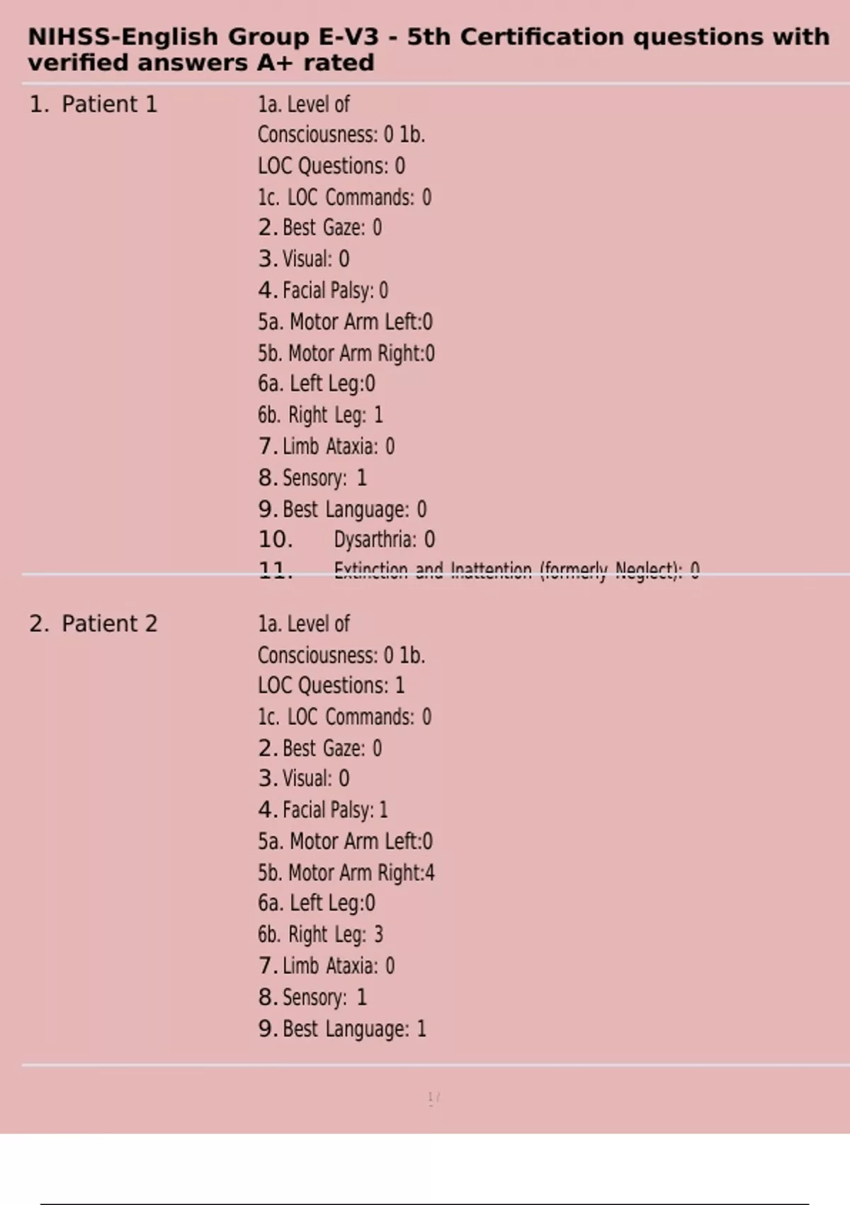 , NIHSS-English Group E-V3 - 5th Certification questions with