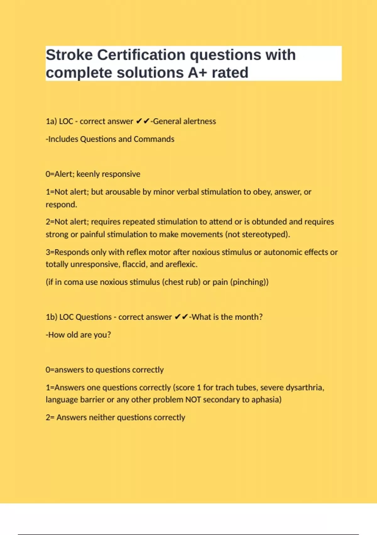 1a) LOC - correct answer ✔✔-General alertness