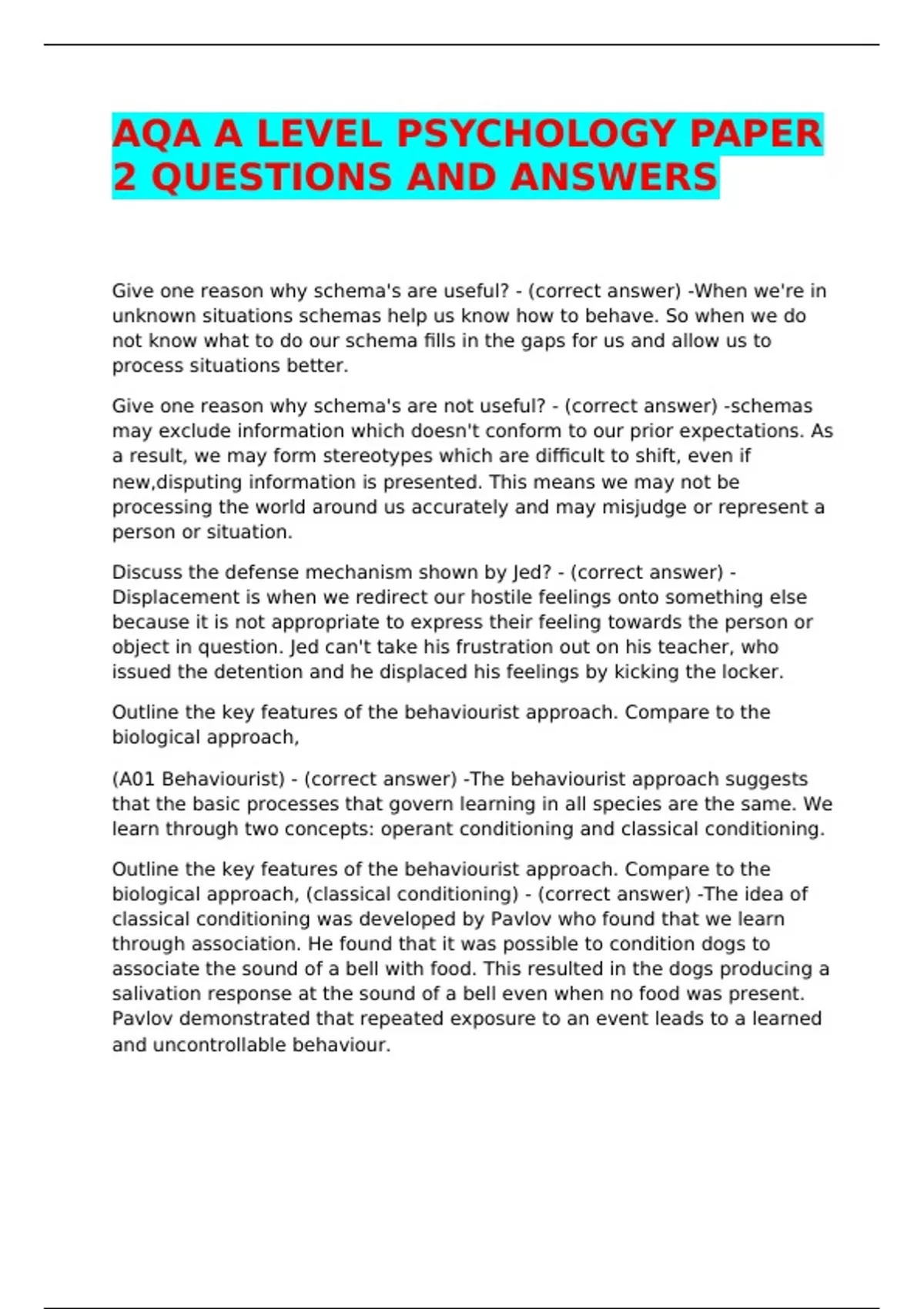 AQA A LEVEL PSYCHOLOGY PAPER