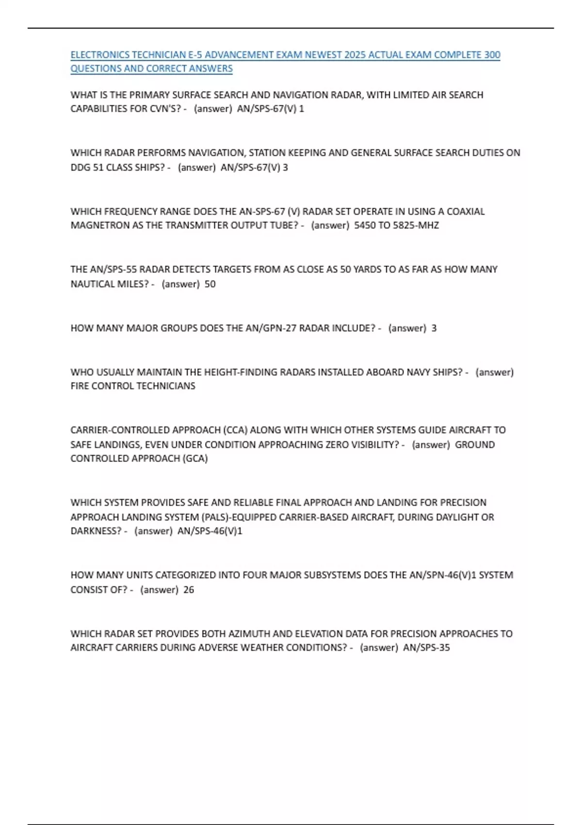 , ELECTRONICS TECHNICIAN E-5 ADVANCEMENT EXAM NEWEST 2025 ACTUAL EXAM COMPLETE 300
