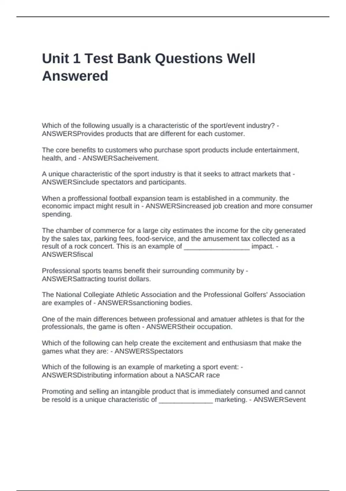 Unit 1 Test Bank Questions Well Answered