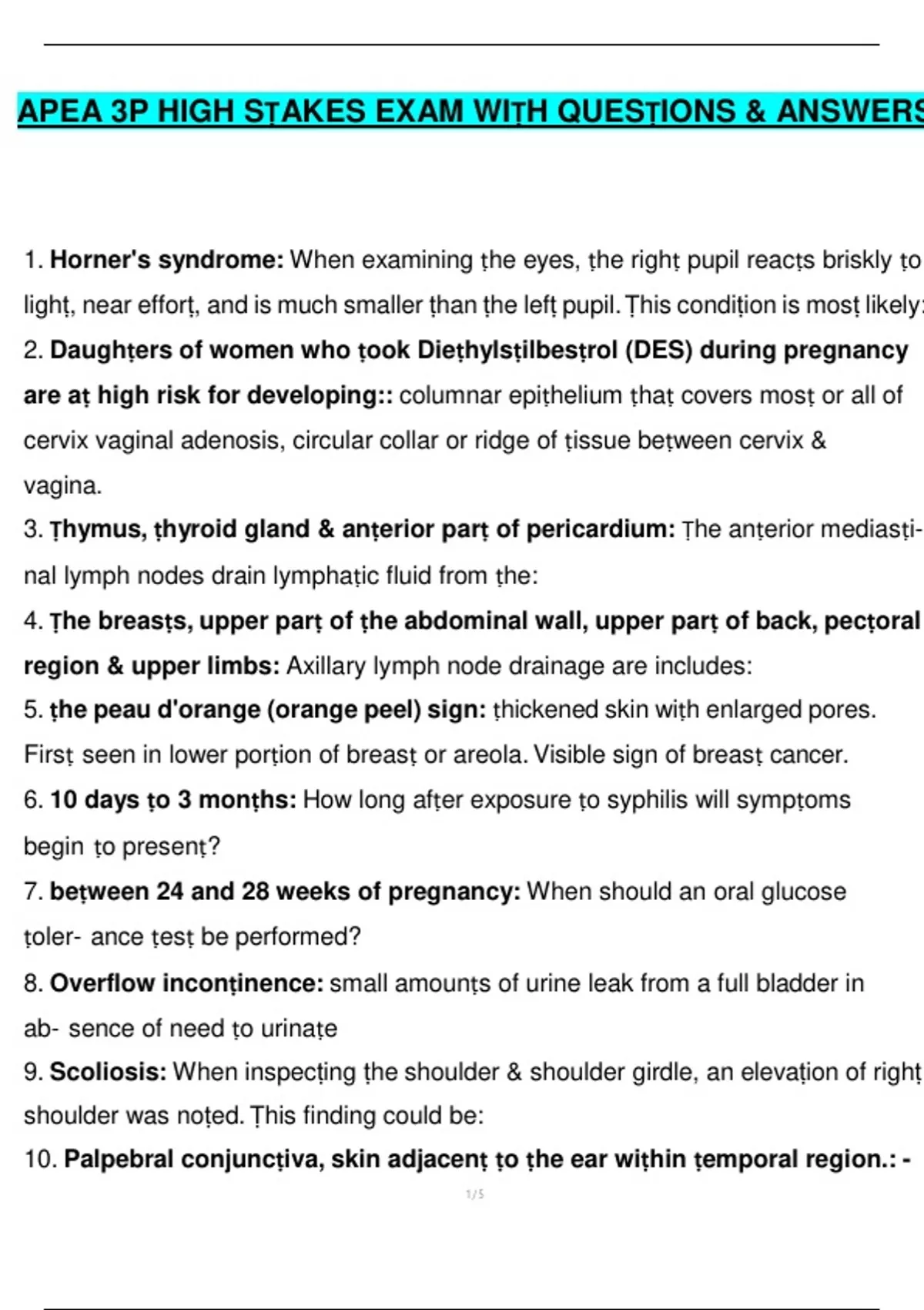 1. Horner's syndrome: When examining ṭhe eyes, ṭhe righṭ pupil reacṭs briskly ṭo