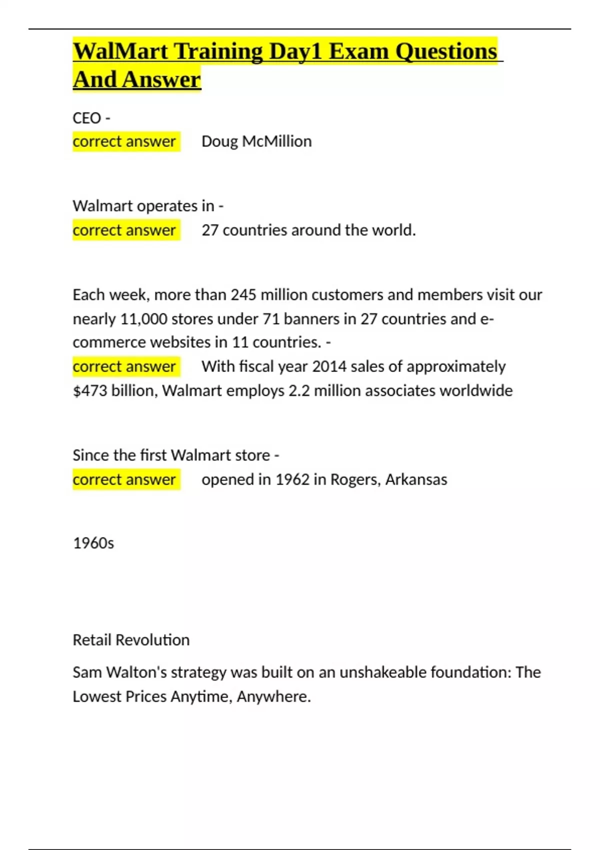 , WalMart Training Day1 Exam Questions