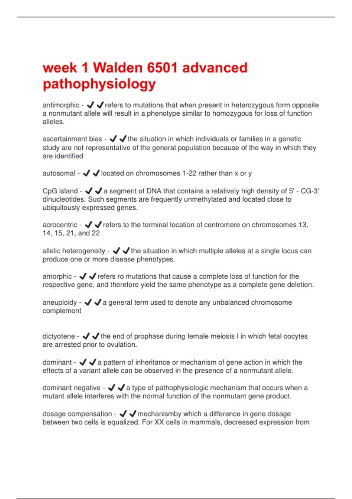 week 1 Walden 6501 advanced pathophysiology Questions And Answers Verified 100% Correct!!