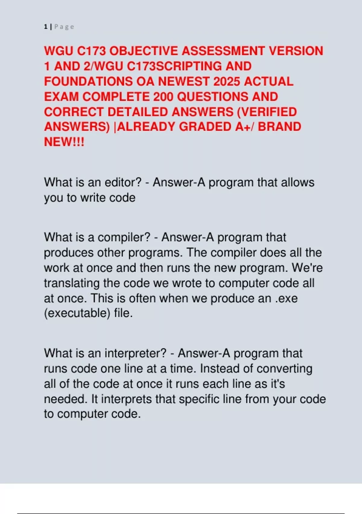 WGU C173 OBJECTIVE ASSESSMENT VERSION
