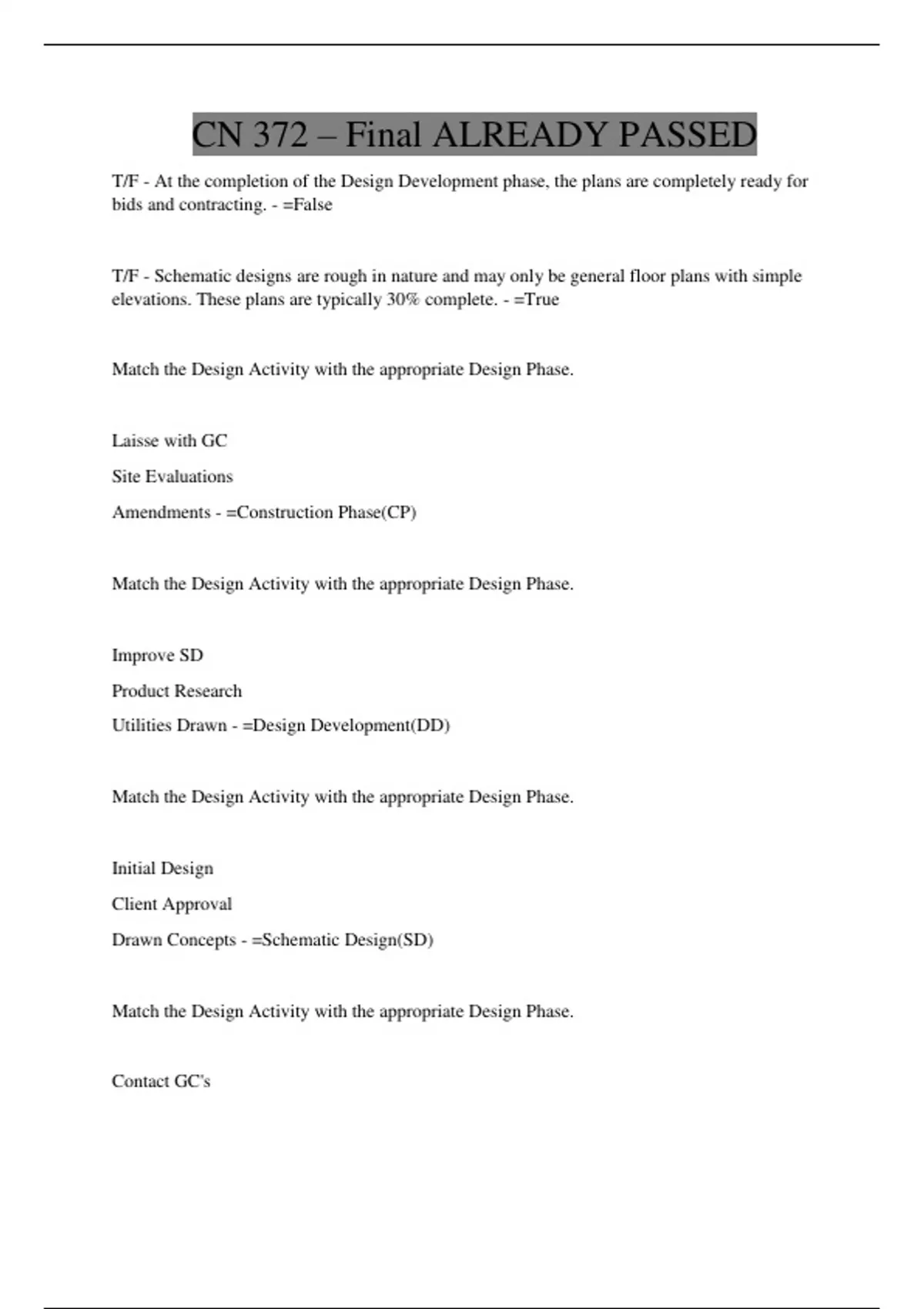 T/F - At the completion of the Design Development phase, the plans are completely ready for