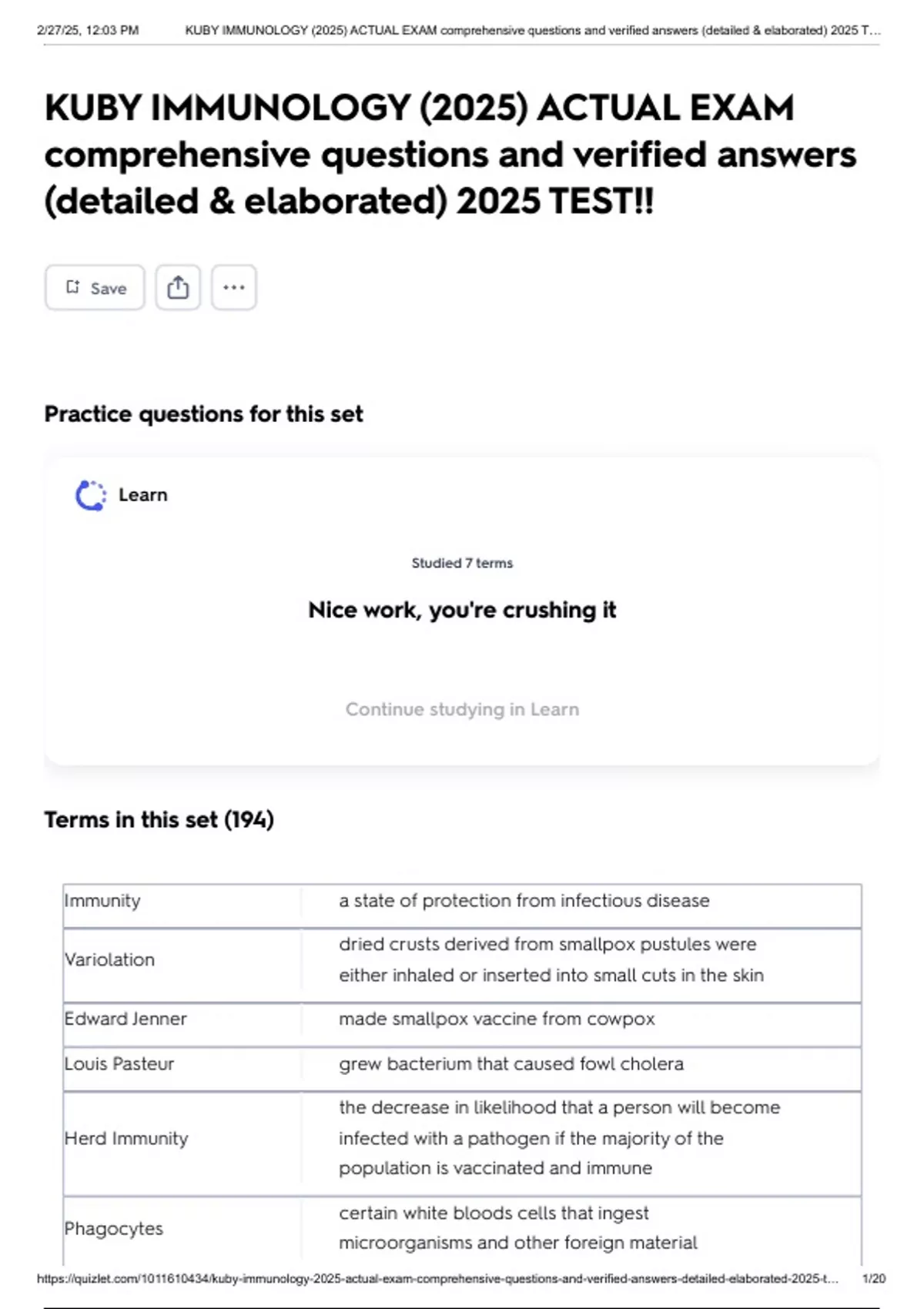 , 2/27/25, 12:03 PM KUBY IMMUNOLOGY (2025) ACTUAL EXAM comprehensive questions and verified answers (detailed & elaborated) 2025 T…