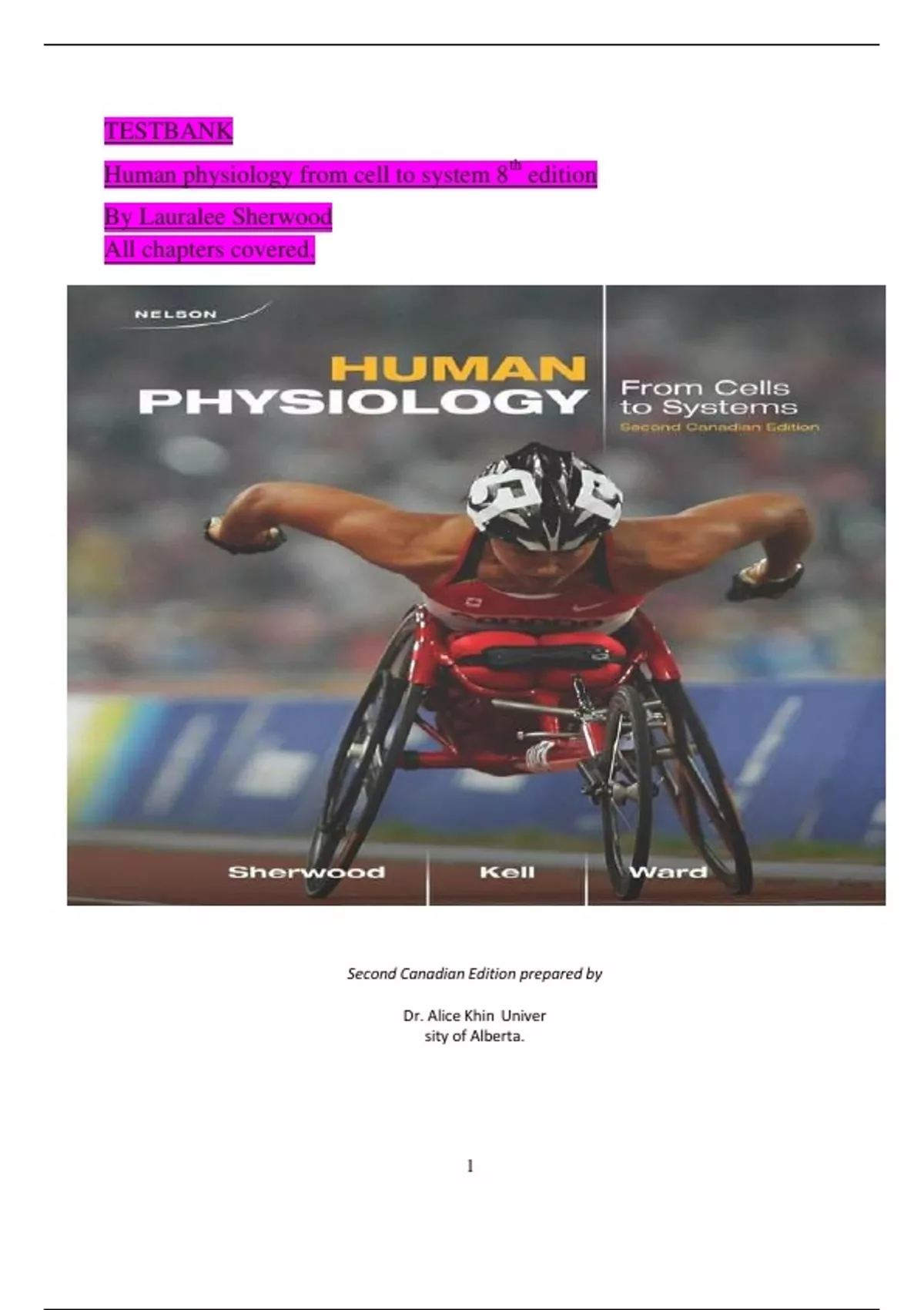 Test Bank For Human Physiology From Cells to Systems 8TH Edition By Lauralee Sherwood | Complete All Chapters 1-17