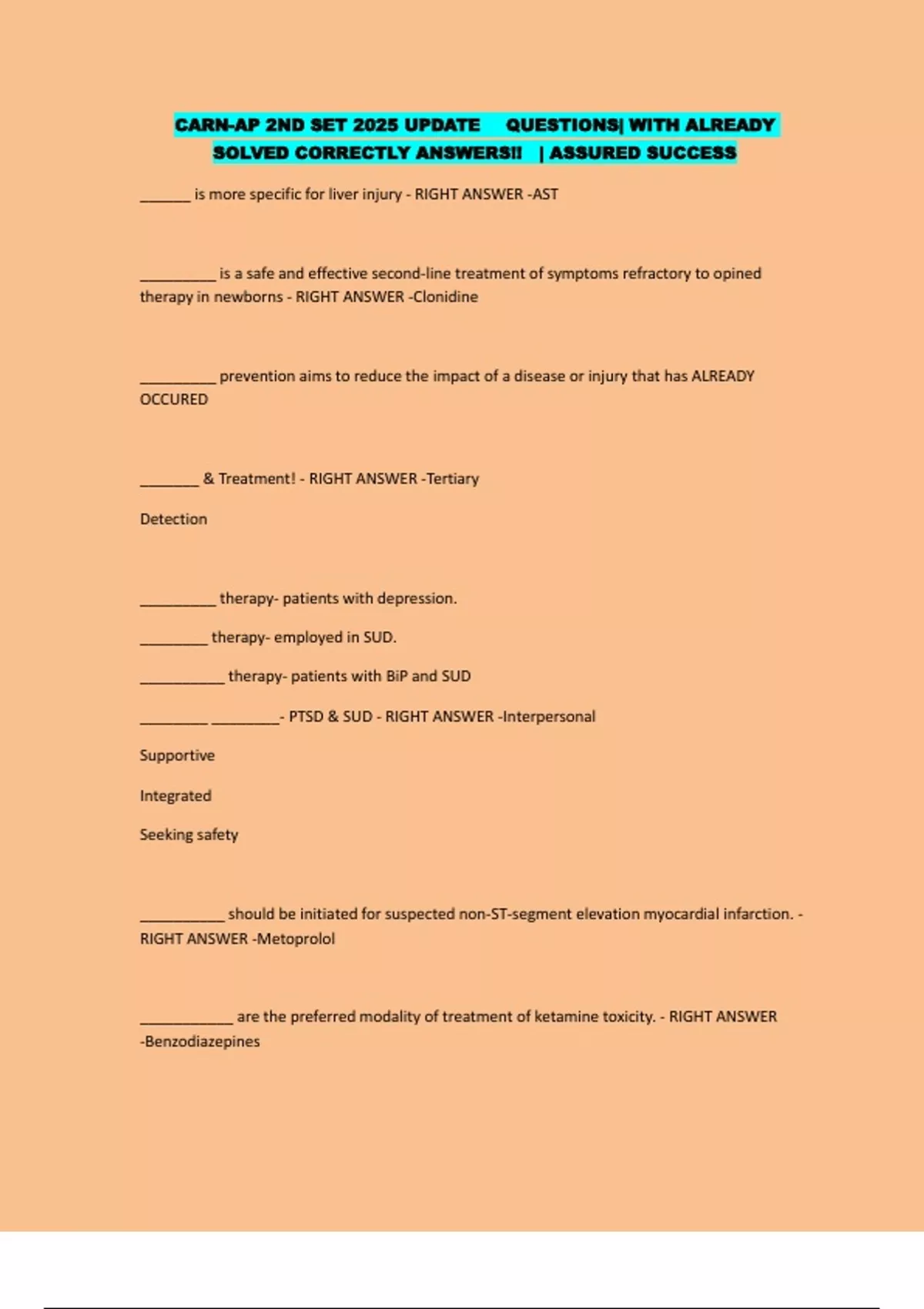 SOLVED CORRECTLY ANSWERS!! | ASSURED SUCCESS