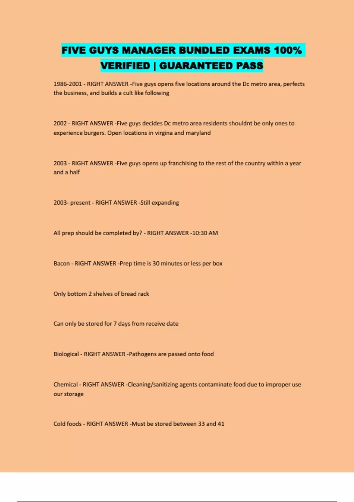 FIVE GUYS MANAGER BUNDLED EXAMS 100% VERIFIED | GUARANTEED PASS