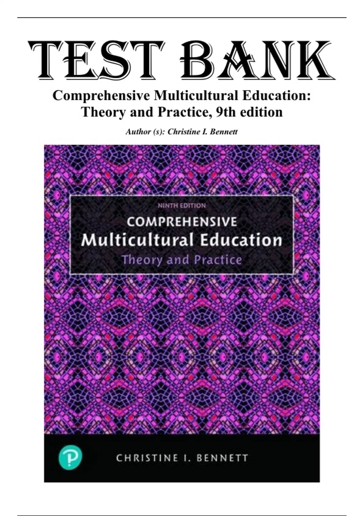 Test Bank for Comprehensive Multicultural Education: Theory and Practice, 9th edition by Bennett. Full Chapters Include;.....Part I: The Case for Multicultural Education 1. Multicultural Schools: What, Why, and How 2. Culture, Race, and the Contexts for Multicultural Teaching 3. Race Relations and the Nature of Prejudice 4. Affirming Religious Pluralism in U.S. Schools and Society Part II: Roots of Cultural Diversity in the United States: The Conflicting Themes of Assimilation and Pluralism 5. Immigration and Cultural Pluralism: Anglo-European American Perspectives 6. Colonialism, Involuntary Immigration, and the American Dream: American Indian and African American Perspectives 7. Colonialism, Immigration, and the American Dream: Latino Perspectives 8. Contemporary Immigration and the American Dream: Asian American Perspectives 9. U.S. Immigrants from the Middle East: Arab American Perspectives Part III: Reaching All Learners: Perspectives on Culture, Gender, Class, and Exceptionalities 10. The Promise of Culturally Competent Teaching 11. How Does Gender Make a Difference? 12. The Impact of Poverty on American Children and Youth 13. The Challenges of Special Education in Inclusive Classrooms Part IV. Teaching in a Multicultural Society 14. Teaching in Linguistically Diverse Classrooms, James S. Damico and Suriati Abas 15. Curriculum Transformation: A Multicultural Curriculum Development Model for Teacher Decision Making