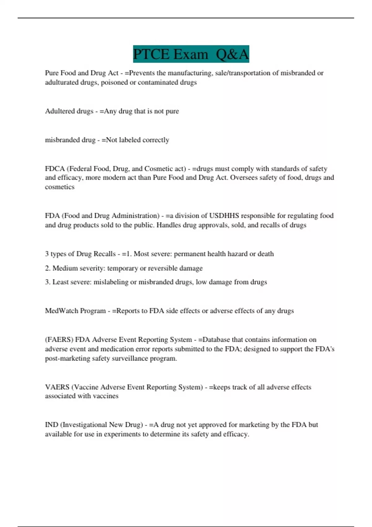 PTCE Exam Q&A