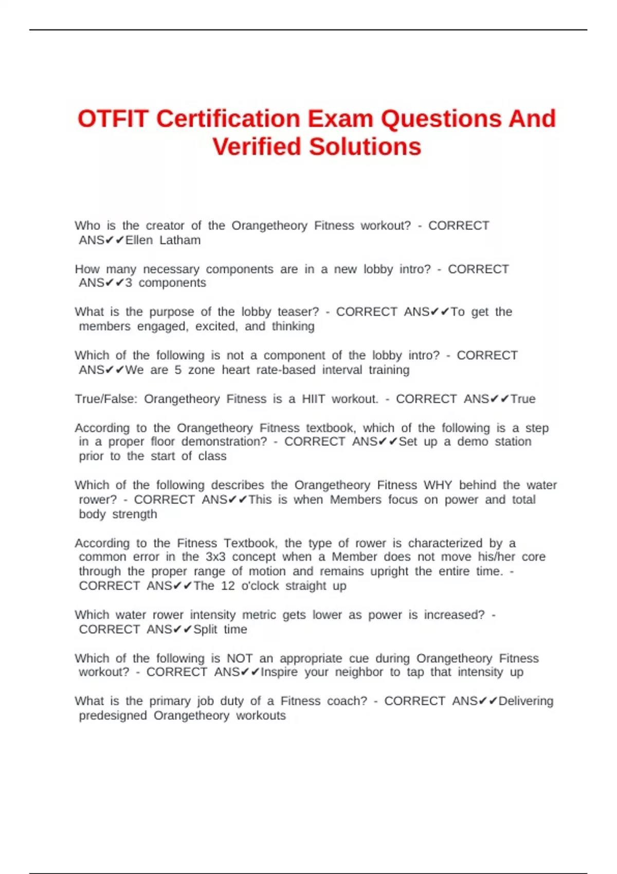 OTFIT Certification Exam Questions And Verified Solutions