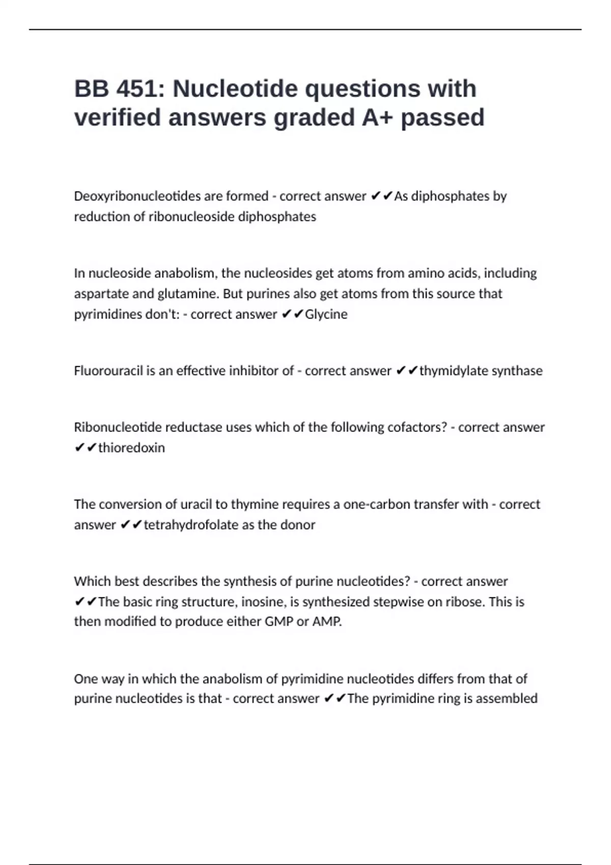 BB 451: Nucleotide questions with