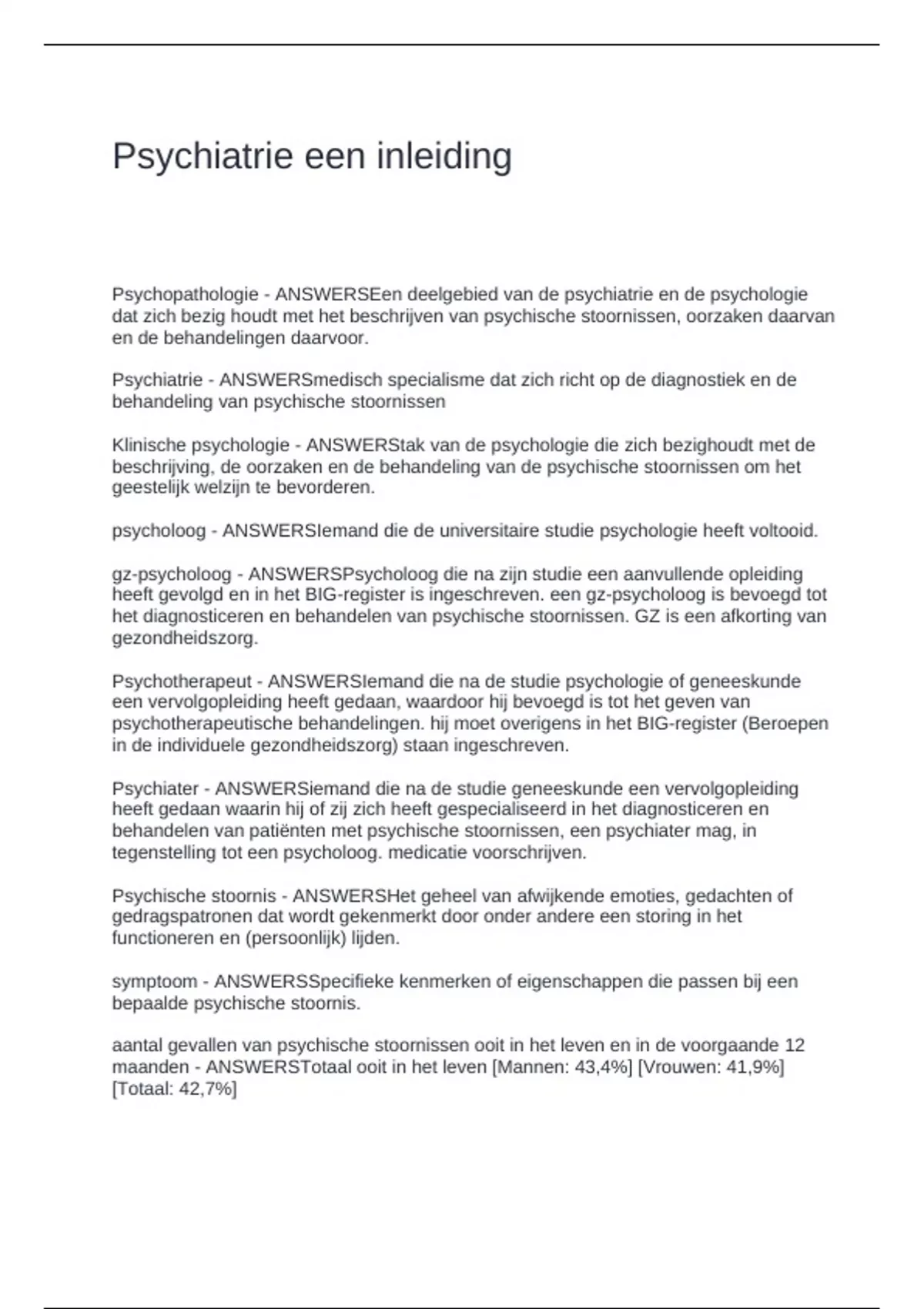 Psychopathologie - ANSWERSEen deelgebied van de psychiatrie en de psychologie