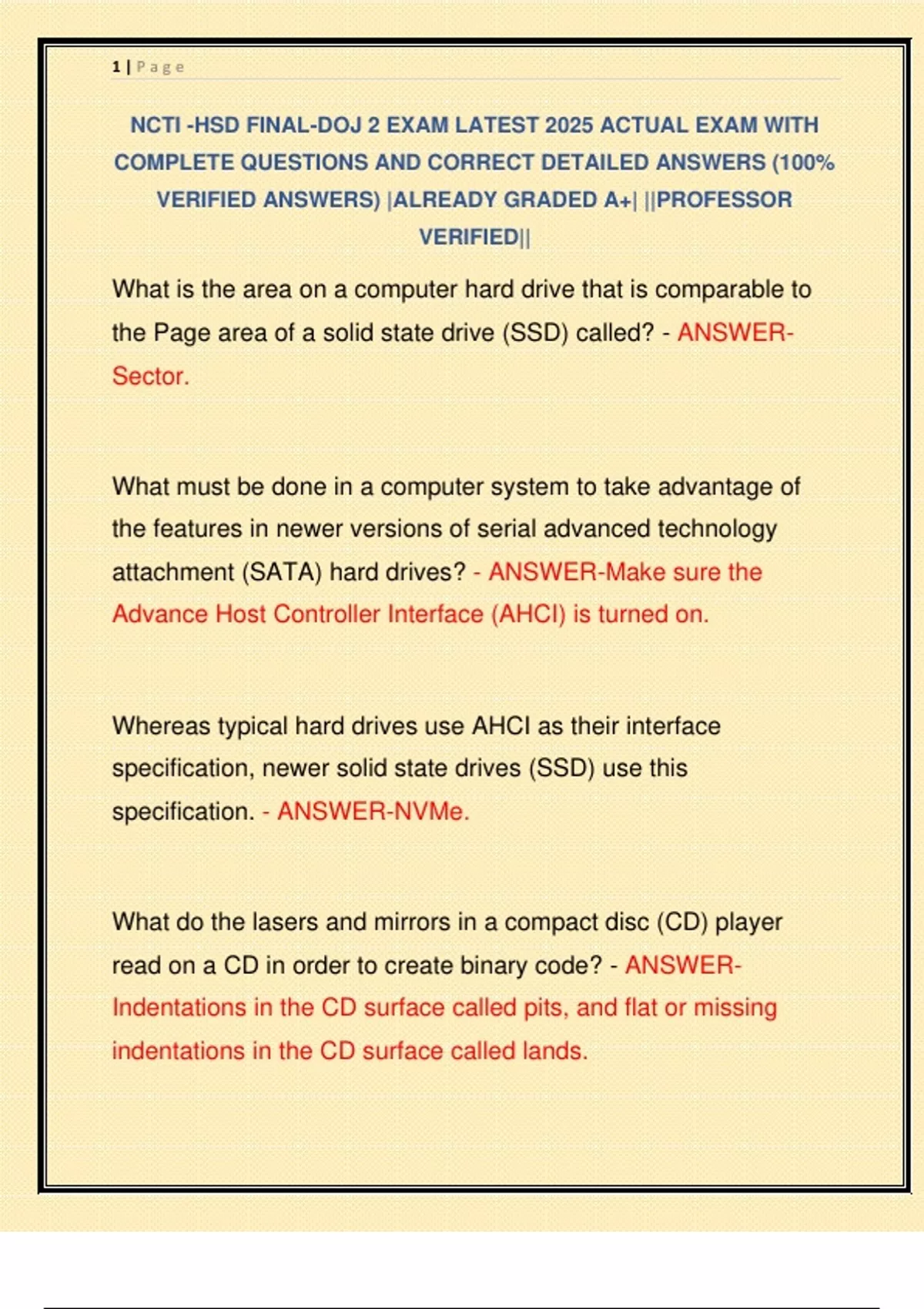 NCTI -HSD FINAL-DOJ 2 EXAM LATEST 2025 ACTUAL EXAM WITH