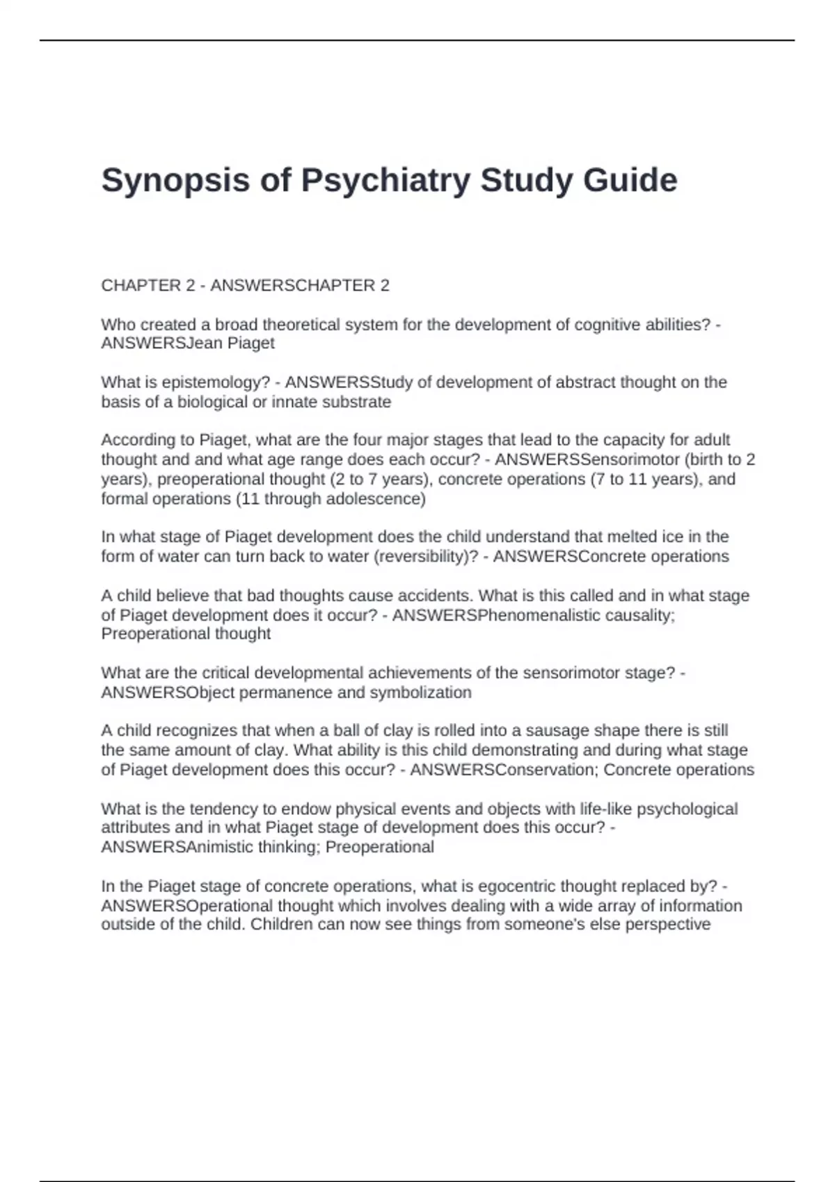 Synopsis of Psychiatry Study Guide
