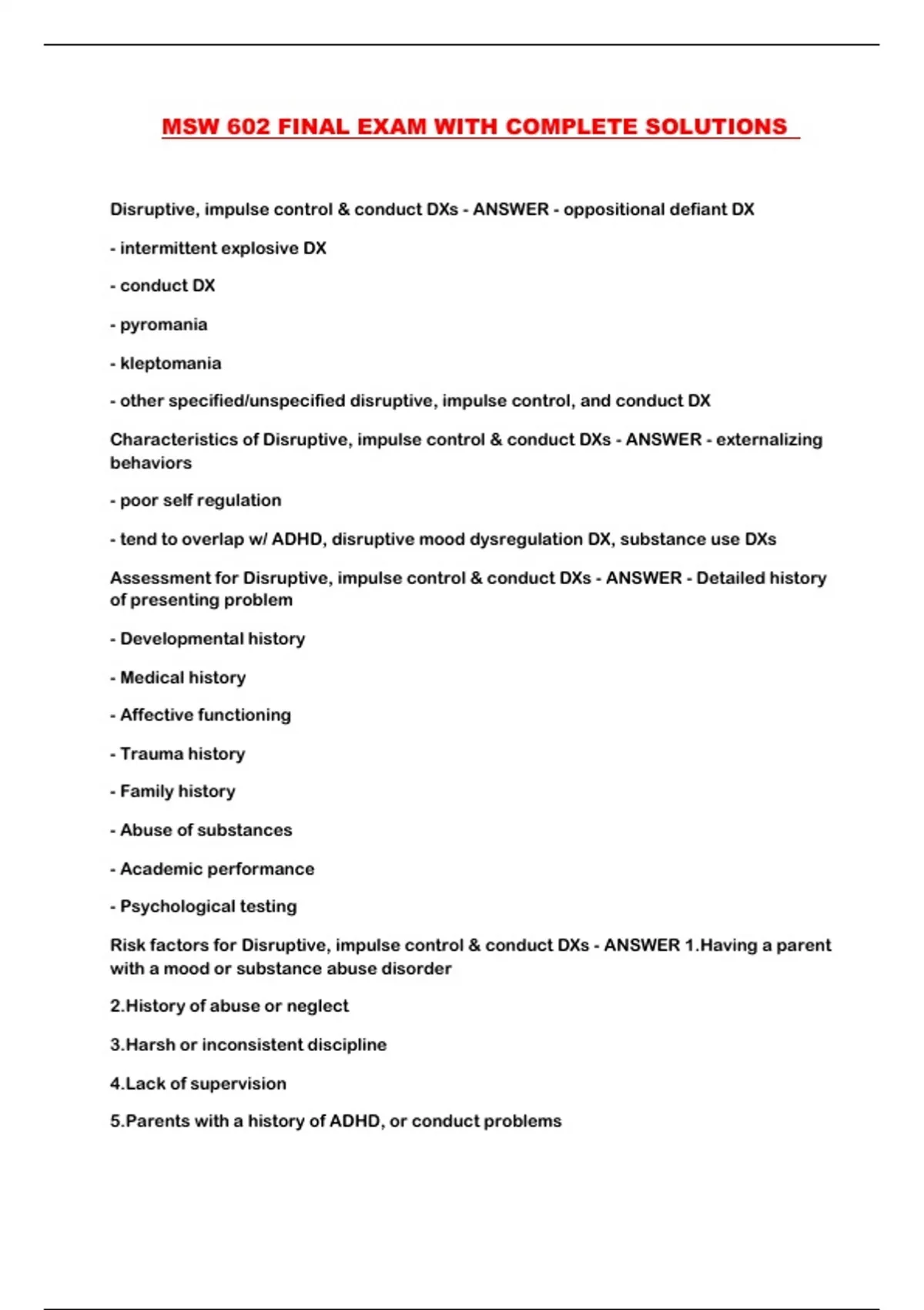 Assessment for Disruptive, impulse control & conduct DXs - ANSWER - Detailed history