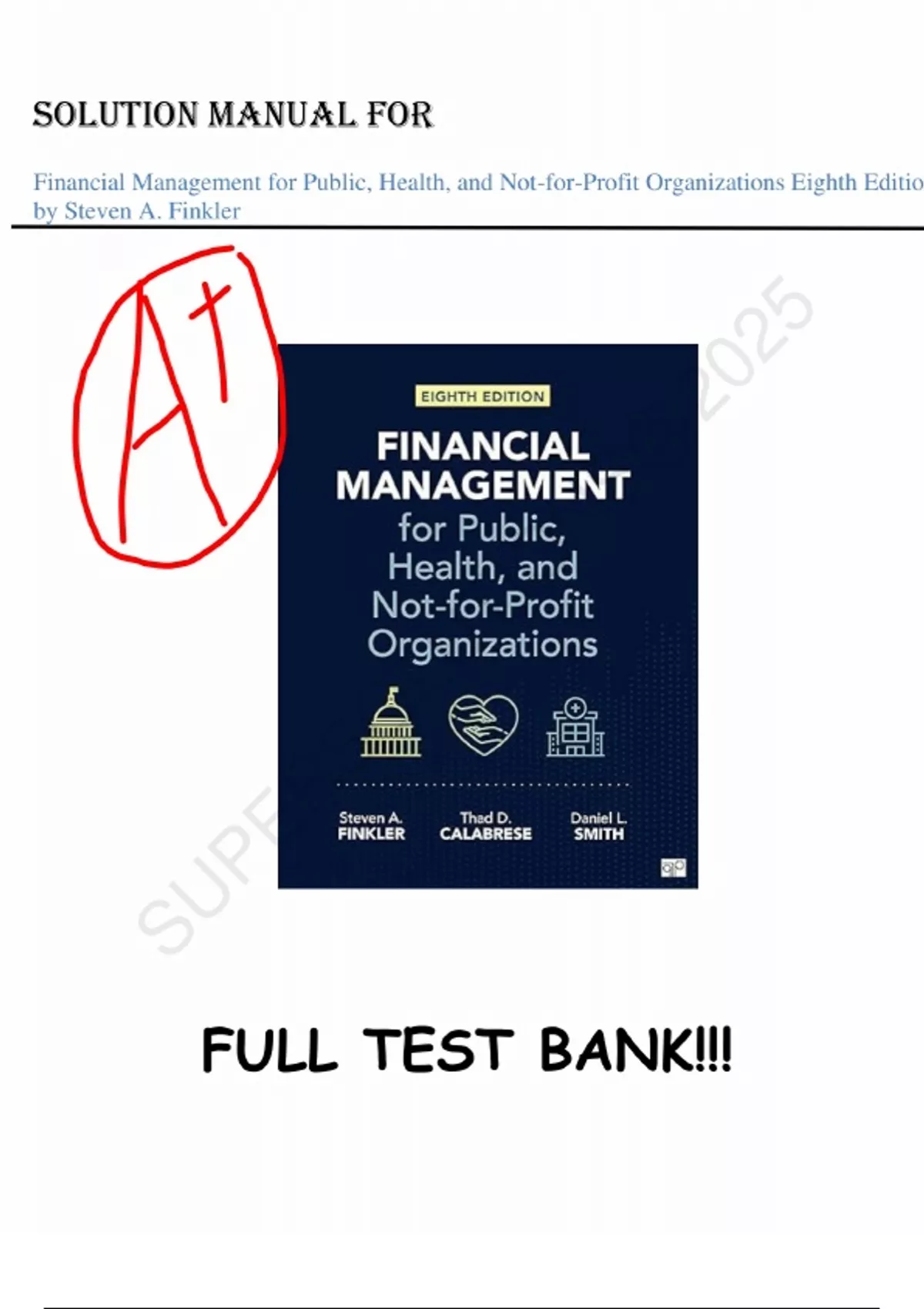Solution Manual for Financial Management for Public Health, and Not-for-Profit Organizations 8th Edition by Finkler, Calabrese & Smith Verified Chapters 1 - 15, Complete