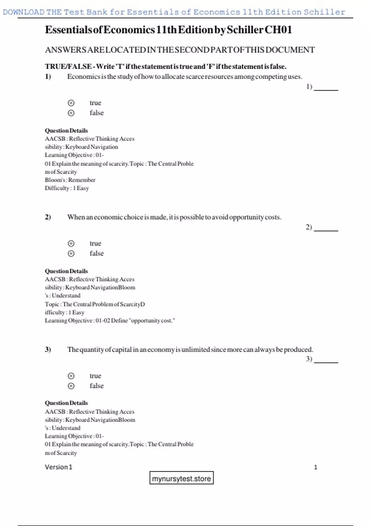 , DOWNLOAD THE Test Bank for Essentials of Economics 11th Edition Schiller
