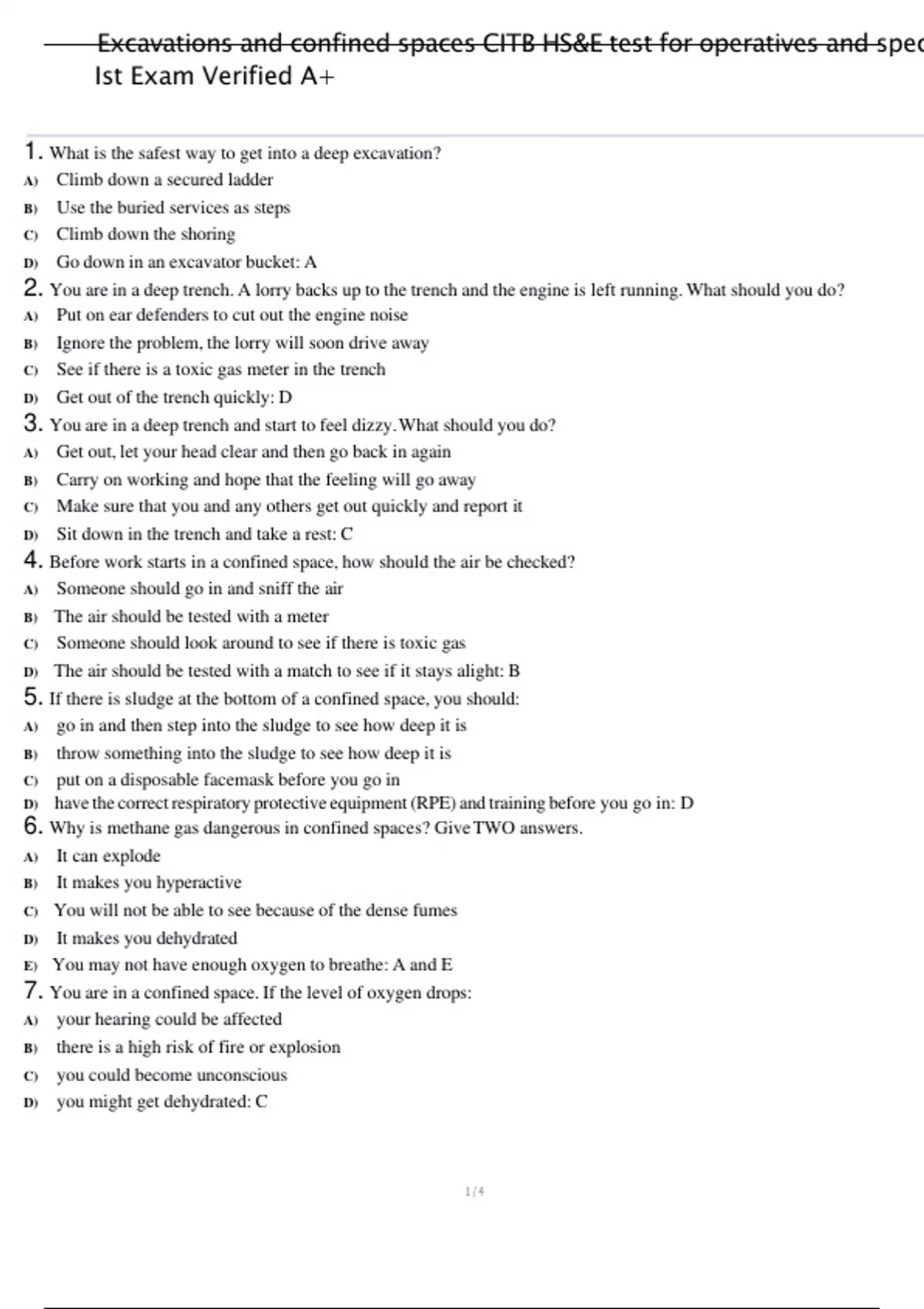 1. What is the safest way to get into a deep excavation?
