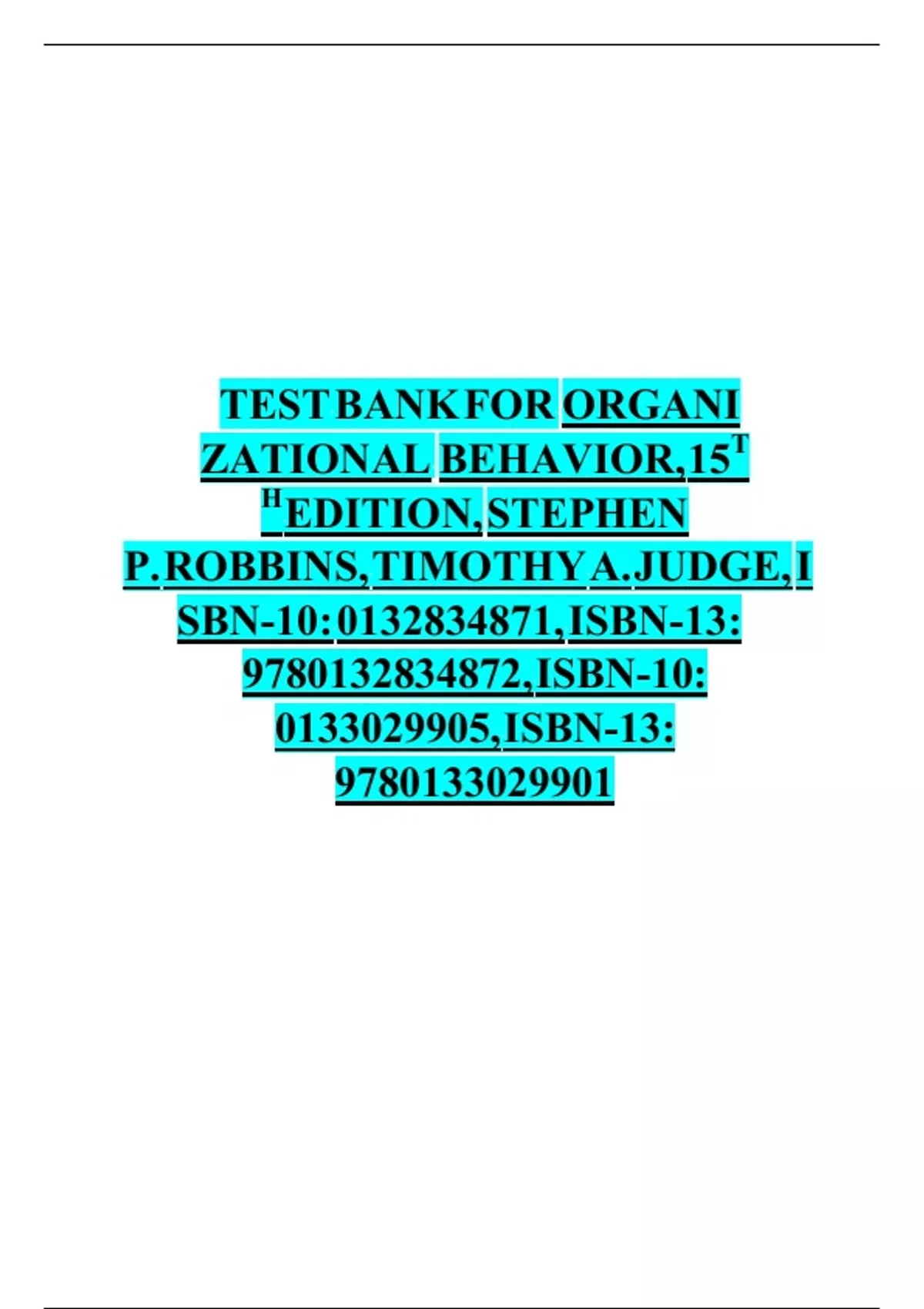TEST BANK FOR ORGANIZATIONAL BEHAVIOR, 15TH EDITION, STEPHEN P. ROBBINS, TIMOTHY A. JUDGE