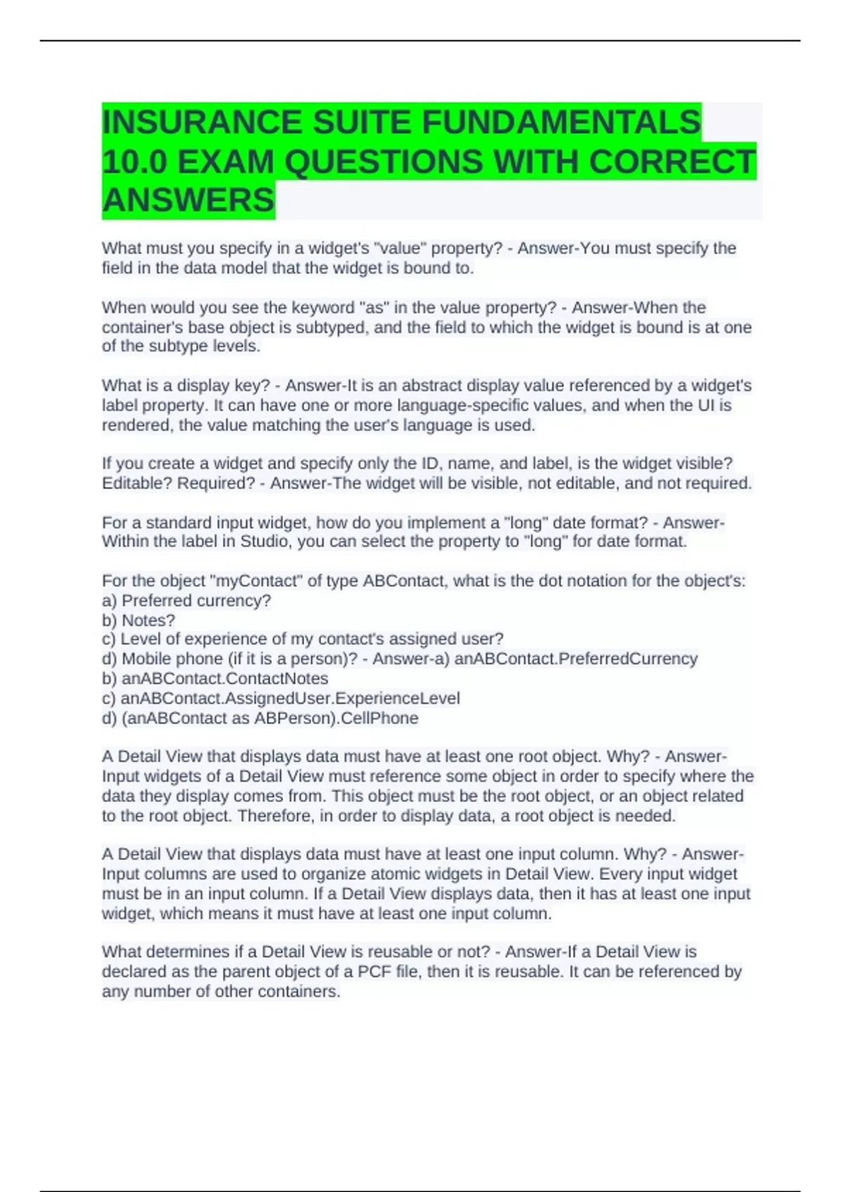 INSURANCE SUITE FUNDAMENTALS 10.0 EXAM QUESTIONS WITH CORRECT ANSWERS