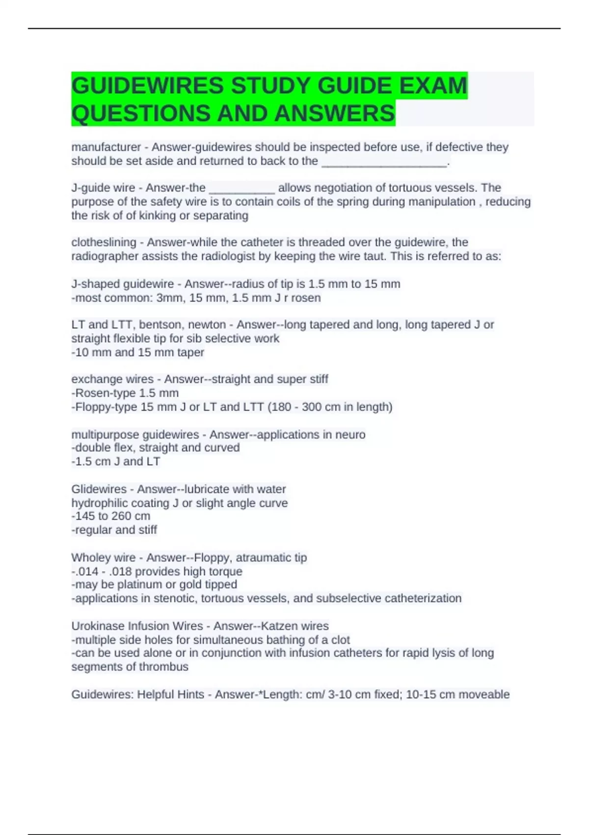 Guidewires: Helpful Hints - Answer-*Length: cm/ 3-10 cm fixed; 10-15 cm moveable
