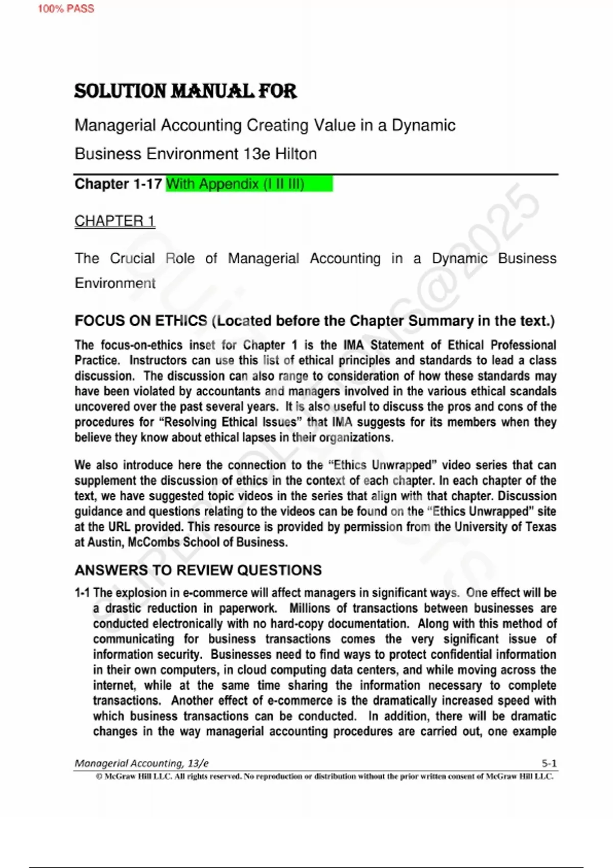Solutions Manual for Managerial Accounting: Creating Value in a Dynamic Business Environment, 13th Edition by Hilton | Verified Chapter's 1 - 17 | Complete