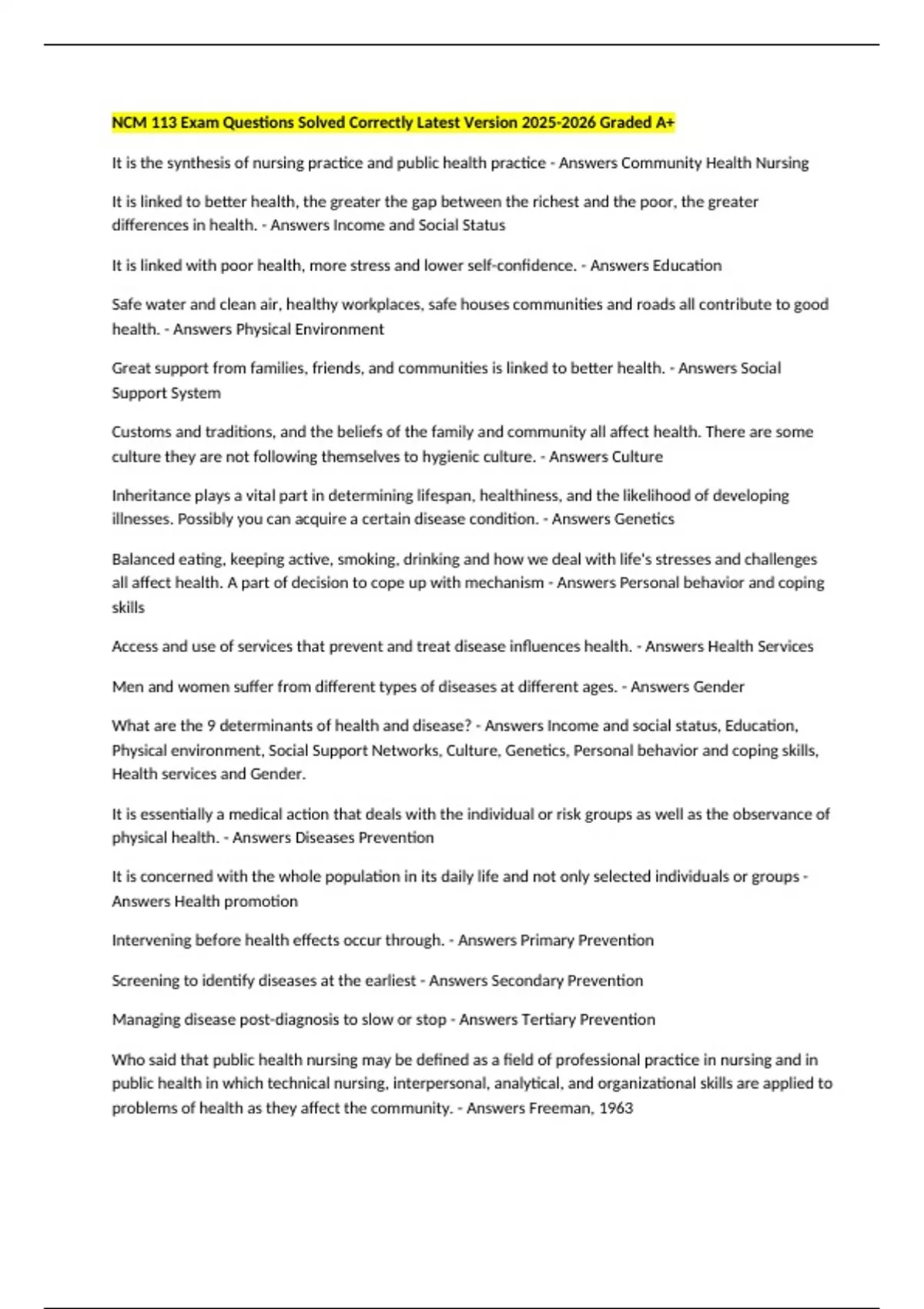 Answers Health promotion