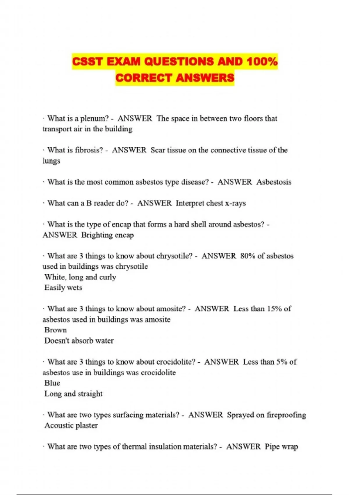 ALL CSST PACKAGED EXAMS: QUESTIONS WITH 100% VERIFIED ANSWERS LATEST UPDATED