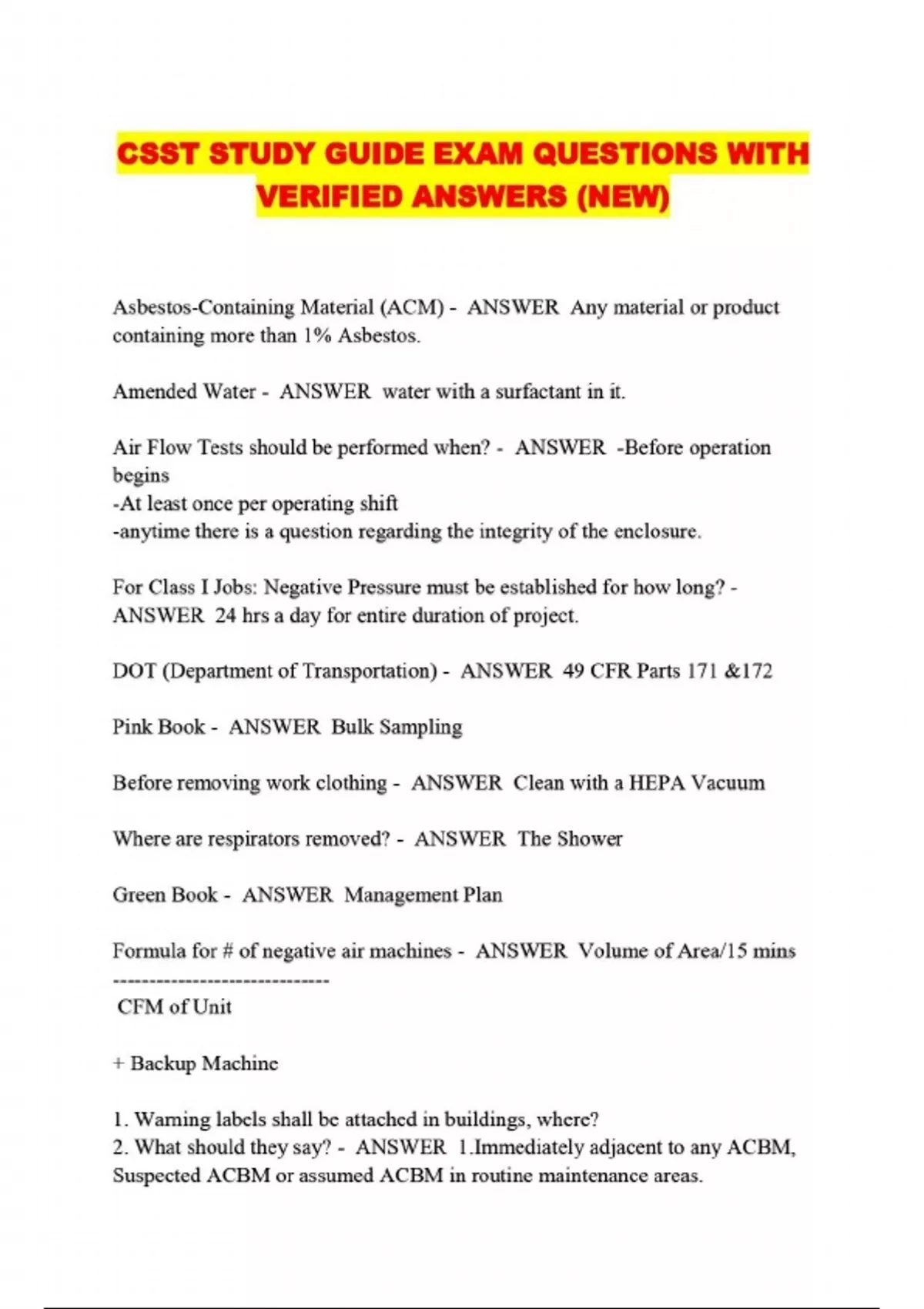 CSST STUDY GUIDE EXAM QUESTIONS WITH VERIFIED ANSWERS
