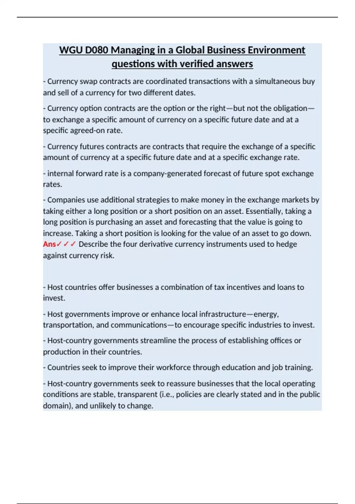 Ans✓✓✓ Describe the four derivative currency instruments used to hedge